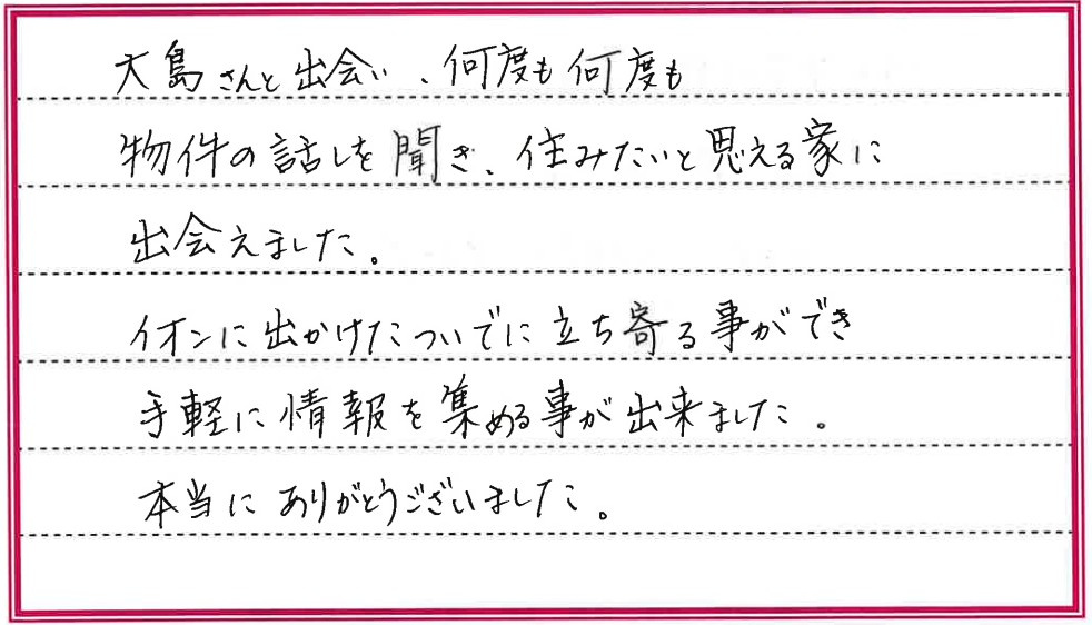 川口市の不動産|イオンハウジングイオンモール川口店 > お客様の声一覧 > I.Yさま